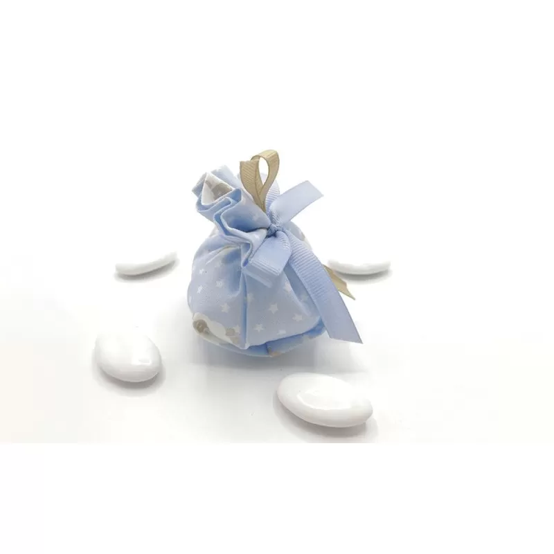 Mini fagottino celeste stelle e pecorelle con 5 confetti a scelta chiusi nel velo.