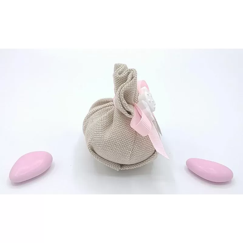 Fagottino tela mare con all'interno 5 confetti a scelta e gessetto assortino nascita da scegliere in opzione.
