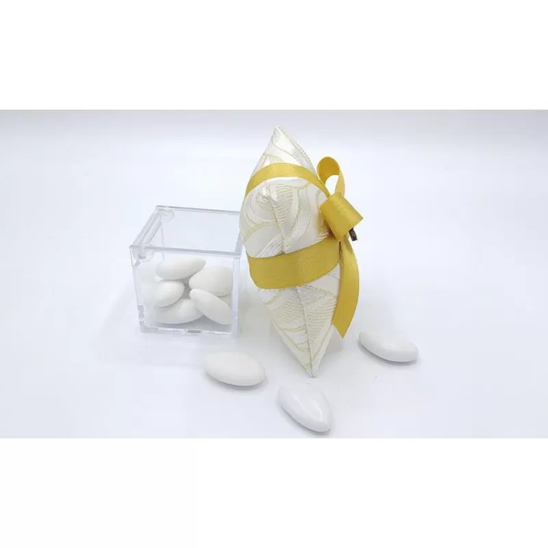 Cuscino nozze d'oro di tessuto maraja oro incluso di 4 confetti e 1 oro con applicazione 50 in legno