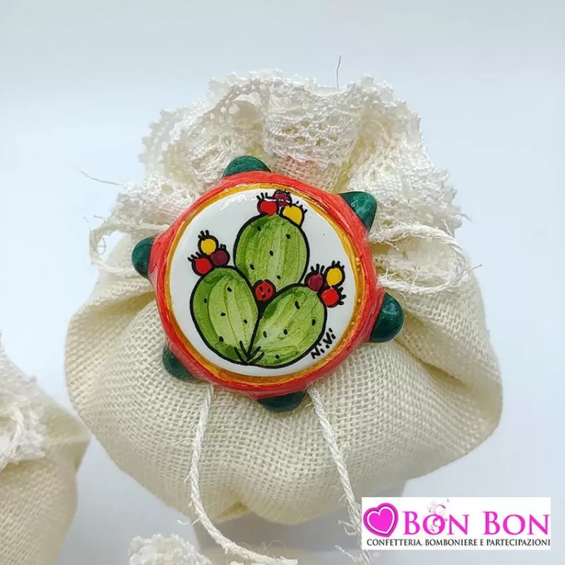 Bomboniera matrimonio tema siciliano calamita tamburello in ceramica dipinta a mano in 3 disegni assortiti.