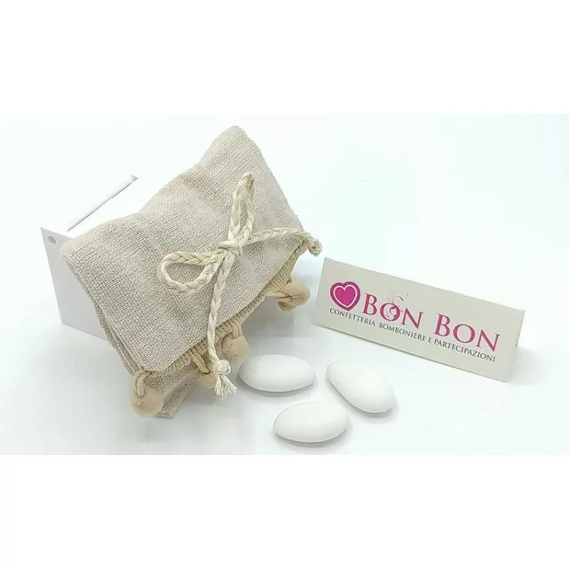 Sacchetto tema siciliano busta lettera juta beige con pon pon, confezionato con 5 confetti a scelta.